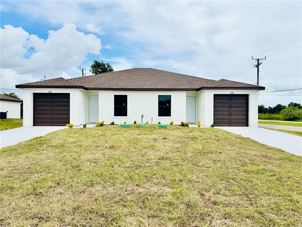 NO FLOOD ZONE No HOA!!! Welcome to this brand-new, beautifully built duplex located in the desirable area of Punta Gorda, Florida. Each side of this modern property features 3 spacious bedrooms and 2 full bathrooms, offering comfort, style, and functionality for today’s lifestyle. Step inside to find an open-concept floor plan with high-quality finishes throughout, including modern kitchens with stainless steel appliances, elegant countertops, and custom cabinetry. The primary suites feature walk-in closets and private bathrooms for added convenience. Additional highlights include: Attached garage for each unit, Private entrances and driveways, Energy-efficient construction and appliances, Covered lanai for outdoor relaxation, Low-maintenance landscaping, Perfect for investors or owner-occupants, this duplex offers the opportunity to live on one side and rent the other, or rent both units for excellent income potential. Don’t miss your chance to own this stunning new duplex in one of Punta Gorda’s growing neighborhoods—schedule your showing today!